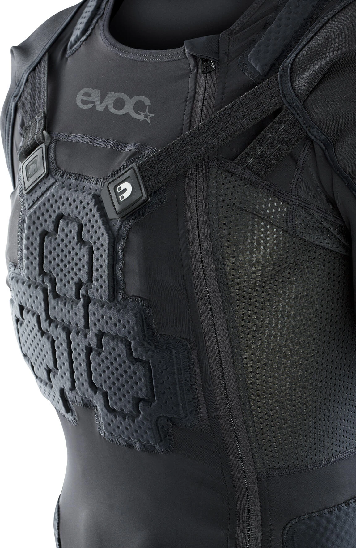 - Anpassbare AIROFLEX-Riemen mit FIDLOCK-Magnetschließe fixieren die Schulterprotektoren (Level 2) Gegen Geruchsbildung: Polygiene Odor Crunch behandelt