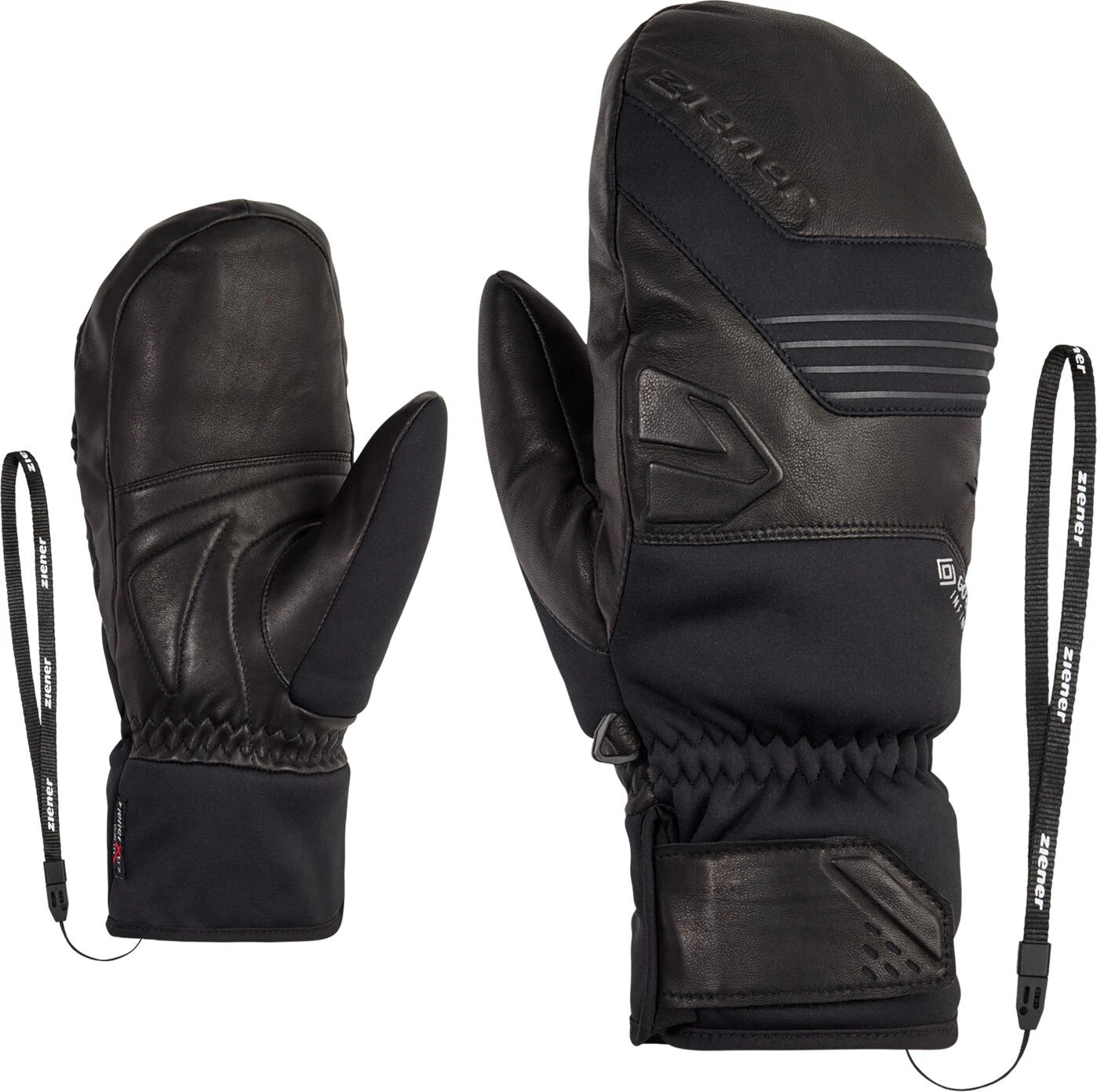 - Die extra warmen und besonders weichen ZIENER Herrenfäustlinge GILARION GTX INF MITTEN halten dank kuscheligem Plüschfutter und G-LOFT® Isolation an kalten Tagen auf der Piste angenehm warm. Die innovative, teils recycelte G-LOFT® Synthetikfaser kombiniert die Vorzüge natürlicher Daune mit der Unempfindlichkeit der Kunstfaser und ist daher sehr leicht, atmungsaktiv und warm. Die GORE-TEX INFINIUM™ Membran macht den Handschuh absolut winddicht und sehr atmungsaktiv. Für viel Flexibilität und eine hochwertige Ausstattung sorgt die Kombination aus Lammleder und besonders weichem Softshell-Material. Die weiche Lederinnenhand ist gleichermaßen taktil und robust. Die Stulpe kann mit einem Klettverschluss angepasst und über oder unter dem Ärmel getragen werden. Die Z-Leash fixiert den Handschuh zusätzlich am Handgelenk. Das Produkt enthält recyceltes Material – für einen ressourcenschonenden Umgang mit der Umwelt. Enthält nichttextile Teile tierischen Ursprungs.