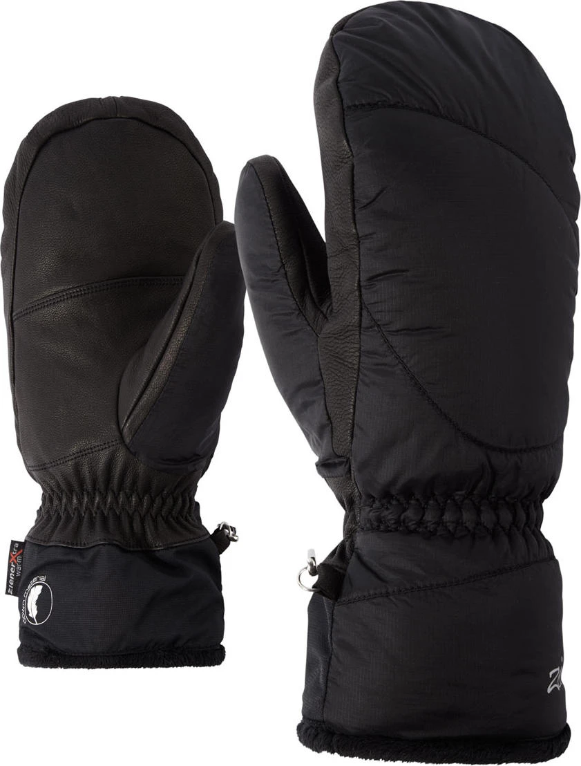 - Der extra warme und weiche ZIENER Skifäustlinge KALI AS® MITTEN LADY für kalte Damenhände besitzt eine griffige und robuste Innenhand aus Ziegenleder sowie ein modernes Plüschfutter am Bündchen. Die extrem warme und luftig leichte Daune macht diese Handschuhe zum perfekten Begleiter an kalten Tagen. Das lange Bündchen sorgt dafür, dass der Handschuh über dem Jackenärmel getragen werden kann. Enthält nichttextile Teile tierischen Ursprungs.